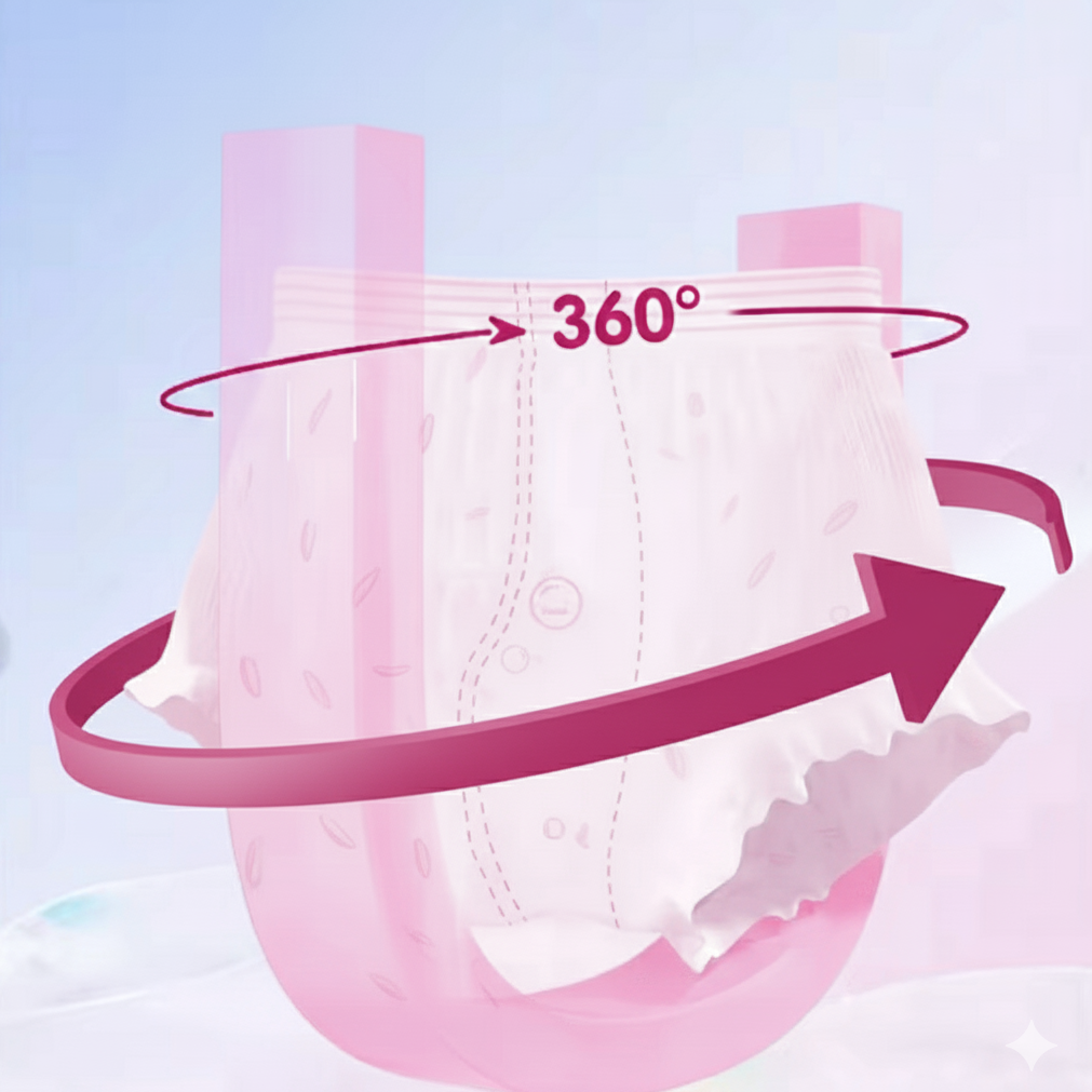 480mm+ long absorbent body and 130mm+ bi-directional three-dimensional perimeter (for anti-side leakage and back leakage prevention)