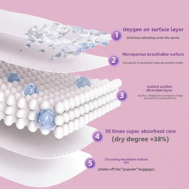 30 times super absorbent core (dry degree +38%), quick-dry top layer and moisture-wicking fabric keep you dry and comfortable.